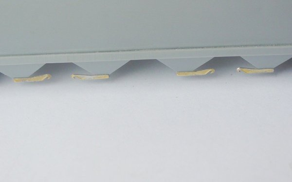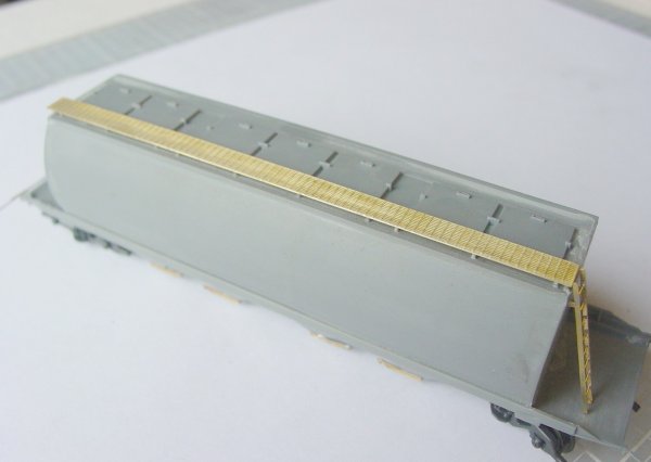 - If you would like to add more detail to the supports, you could make up the hopper door opening rods and fabricate them using photos of the prototype.(refer to bottom photo at left) The supports were designed to accept 0.5mm wire for this purpose.