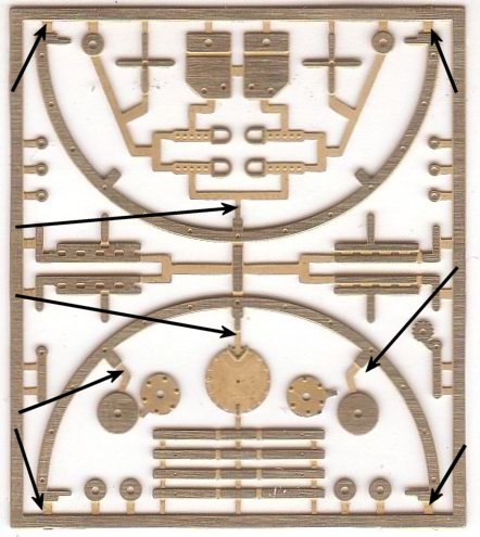 - The handbrake detail can be fitted to the kit, but the position of the parts is assisted by the use of photographs. The handbrake brackets are suitable for both the kit and the RTM versions of the water gin, but they are located in the reverse position (Refer to the top 2 photos at left)
