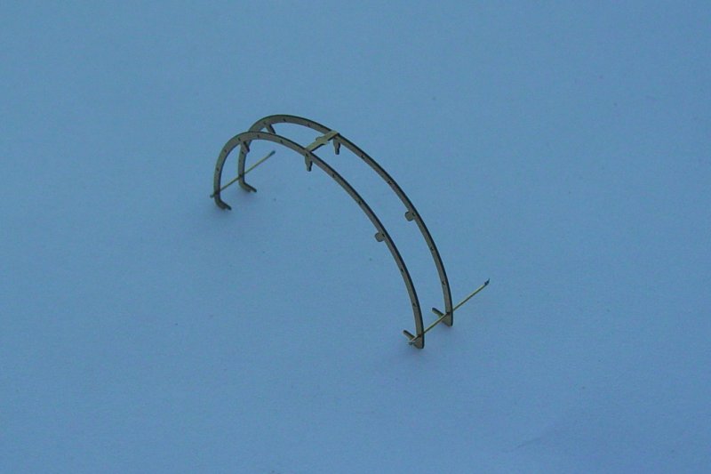 - Cut and locate sections of 0.3mm (0.012") wire through the rung holes of the ladder stiles.
