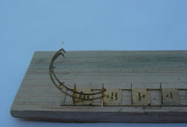 - Finish soldering the ladder rungs in place, remove any excess wire and solder and clean up with some wet and dry paper, wash in warm soapy water and allow to dry, leaving you with a finished ladder. (Refer to the 4th photo at left)
