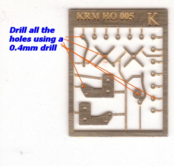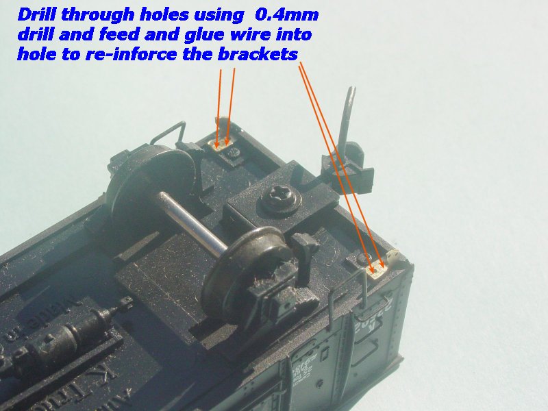 3. You can re-inforce the brackets by drilling holes in the body using a 0.4mm drill, and fitting and glueing 0.4mm brass wire in the holes of the body.(refer to bottom photo at left) This process is optional.