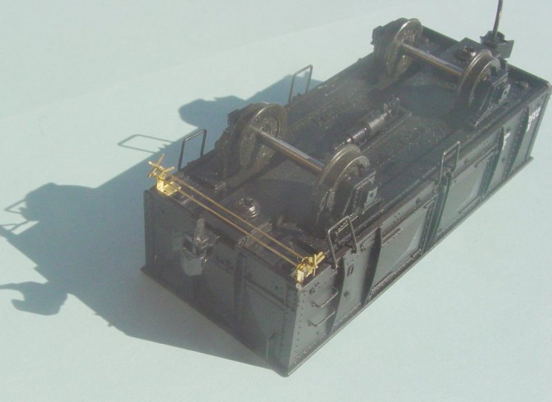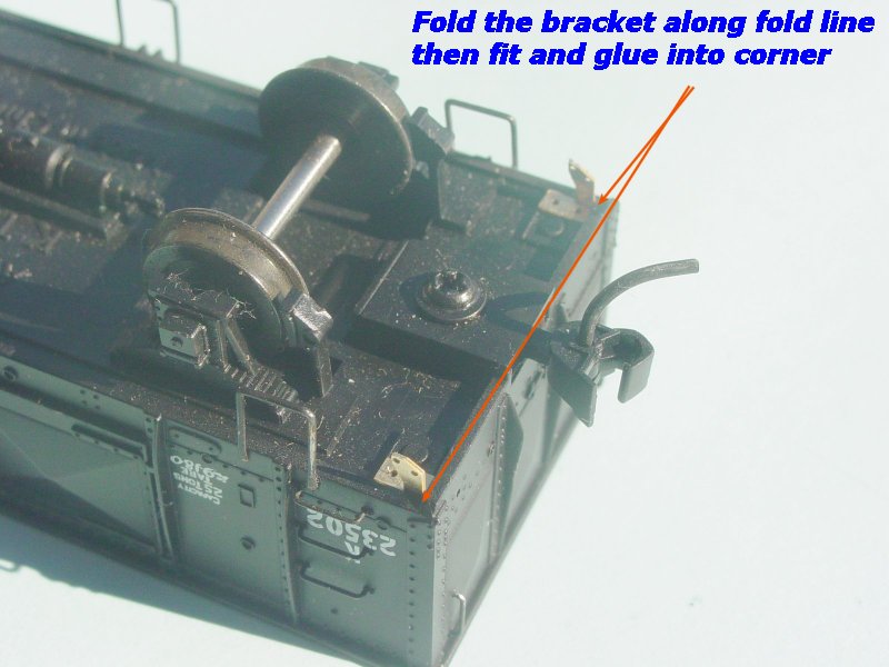 1. The support brackets for the K wagon brake gear fit on the base of the wagon up against the side and the end of the wagon (refer to top photo at left)