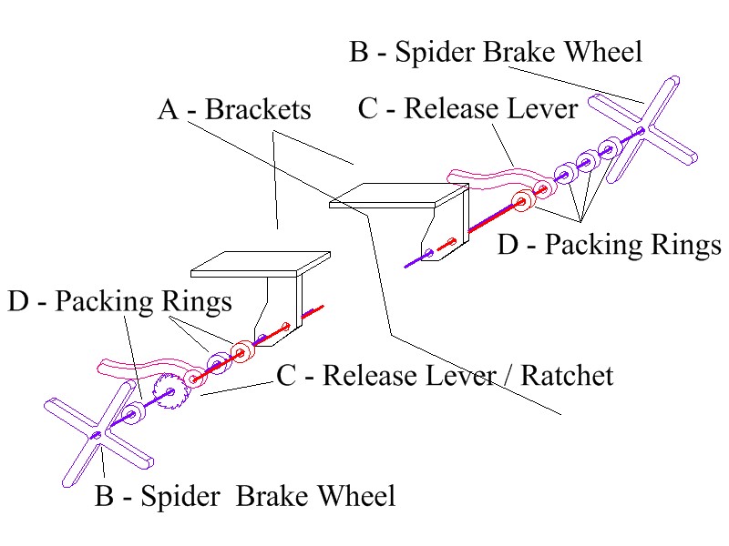 3. The brake wheel, lever and ratchet, can be glued or soldered in place.