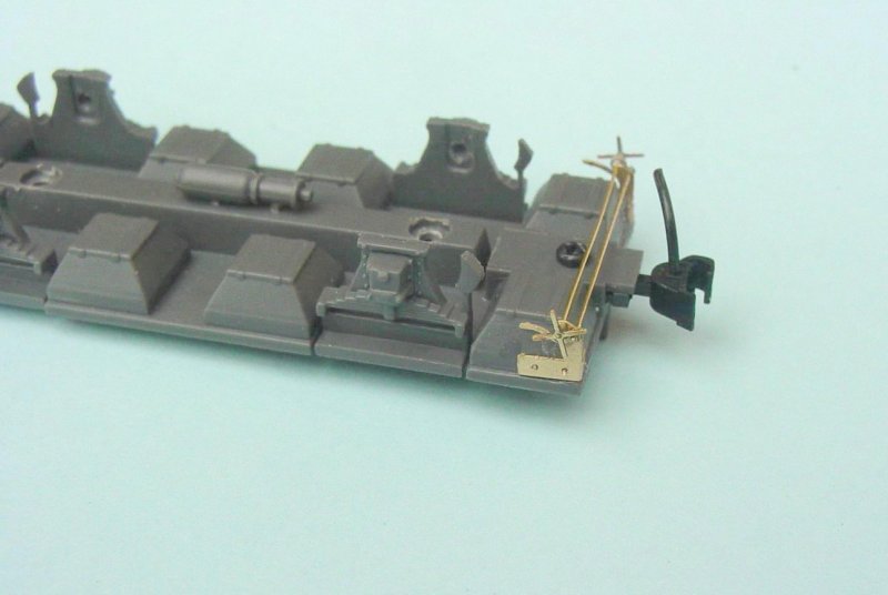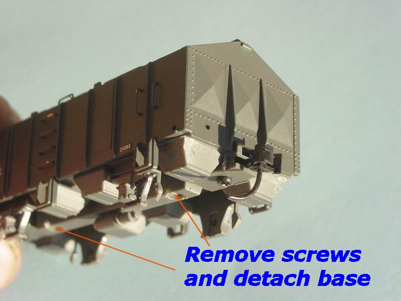 - Thje photos to the left show the unpainted model of the KRM HO 006 RU wheat Hopper Kit attached.