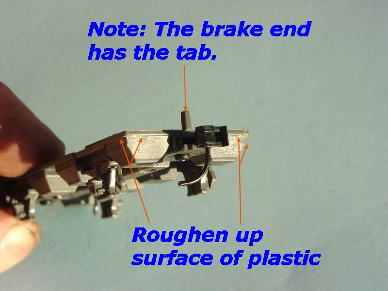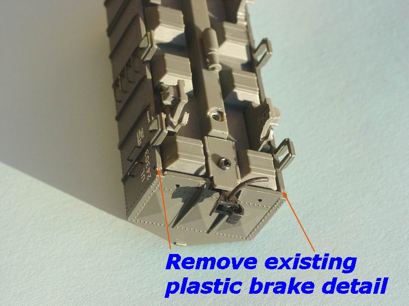 - Remove the existing plastic brake brackets on the hopper (on both sides),(refer to 2nd photo at left)and clean up the plastic so that the base of the vehicle is flat.