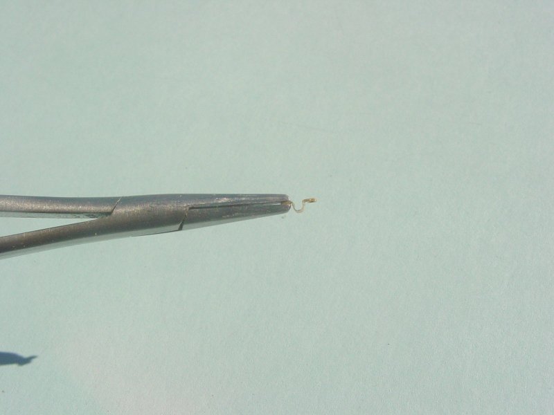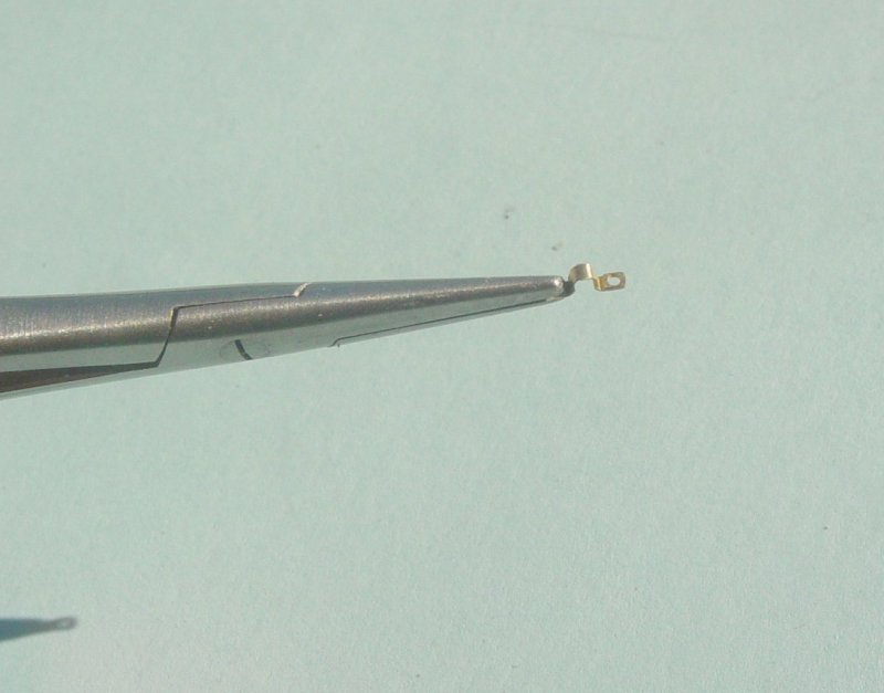 - Place the astragal on top of the 1mm wire at the appropriate locotion, and using a pair of small pliers push down so the the astragal takes shape around the wire.(refer to 3rd & 4th photos at left).