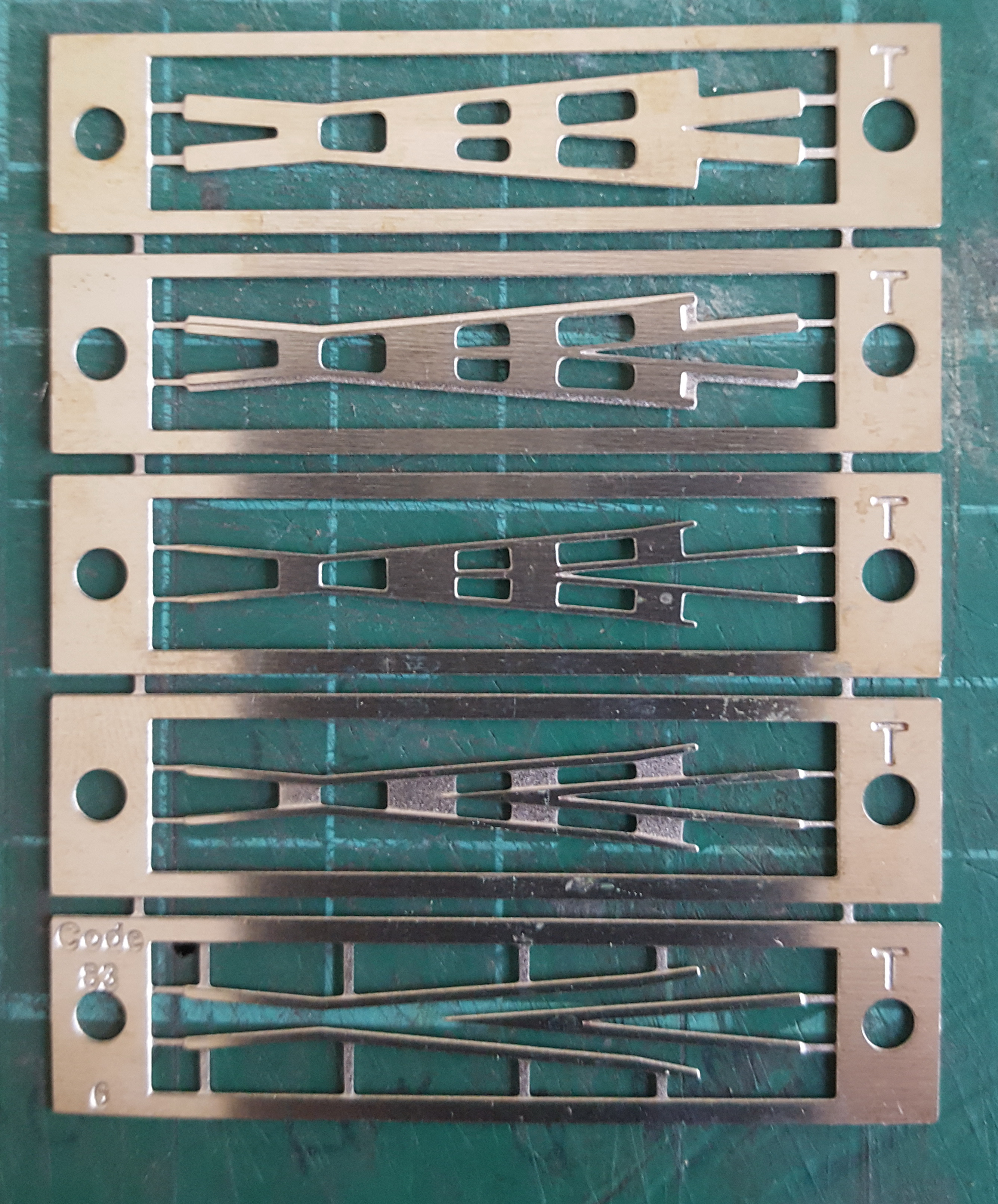 The seperate pieces are laminated together and soldered to form a Code 83 Finescale Number 6 Frog.