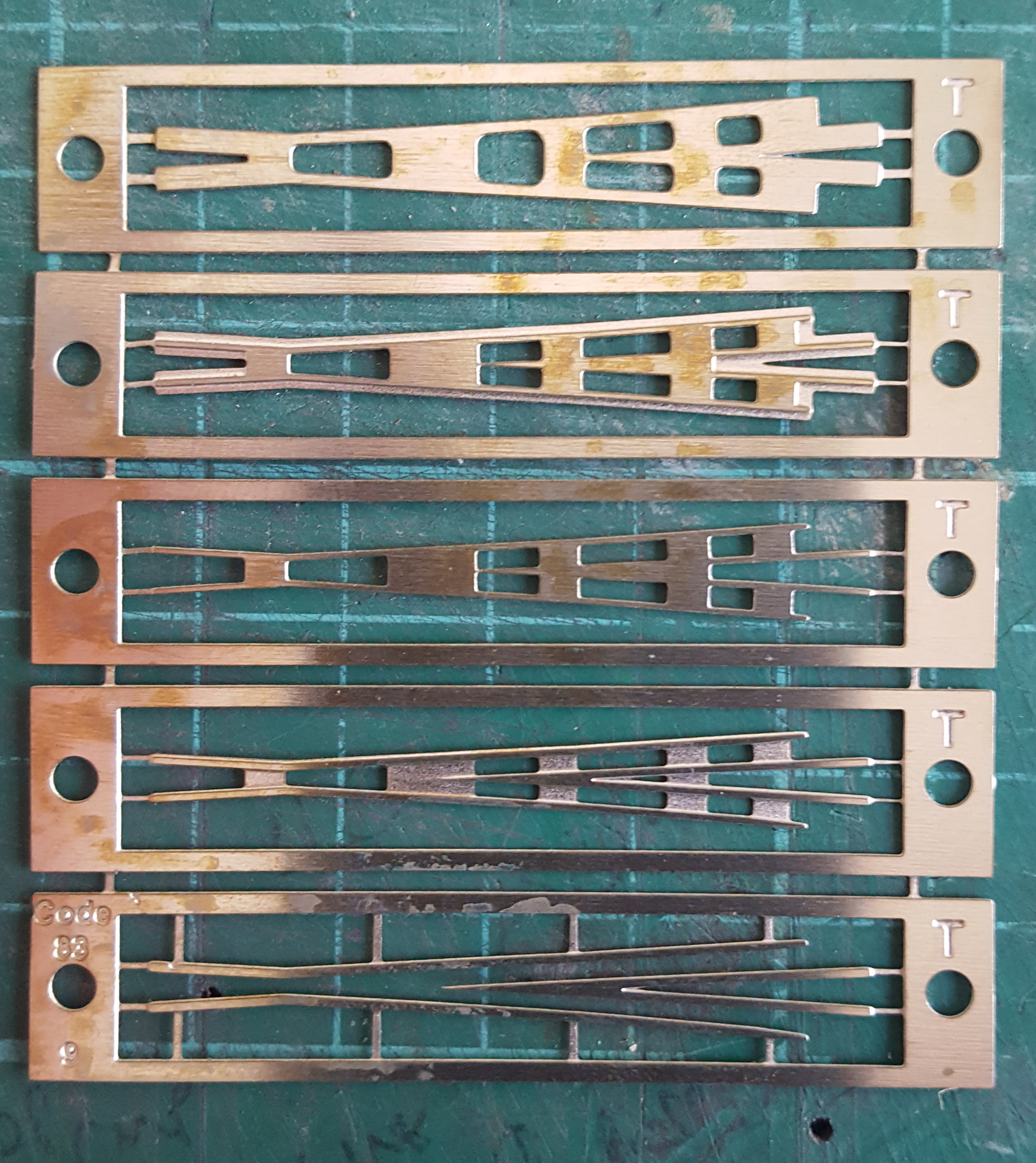 The seperate pieces are laminated together and soldered to form a Code 83 Finescale Number 9 Frog.