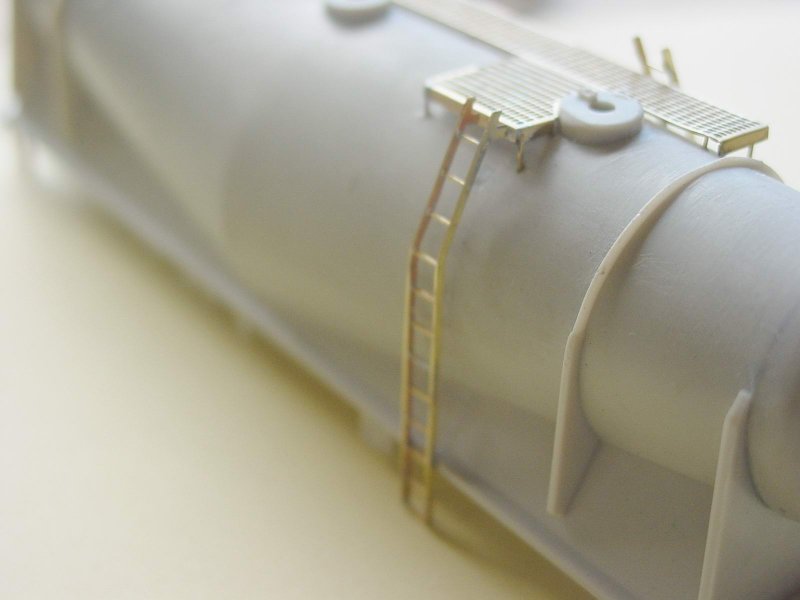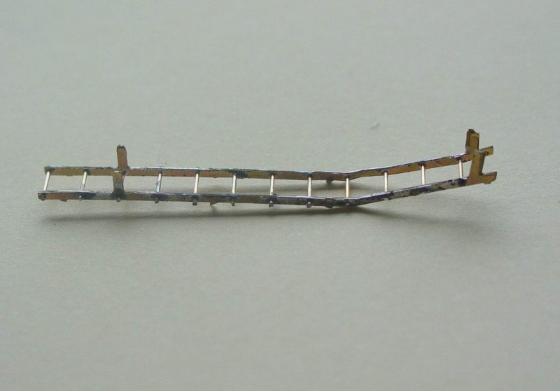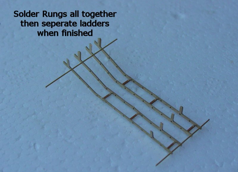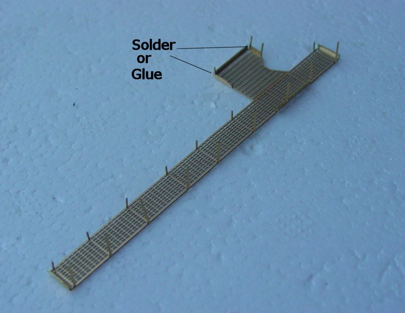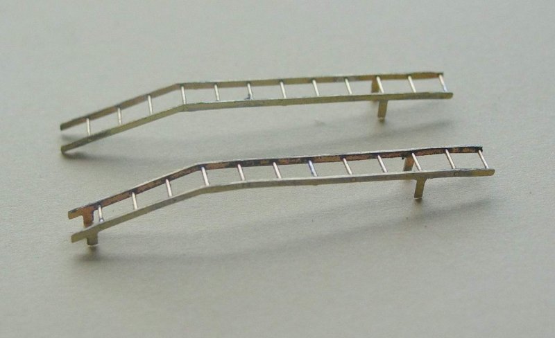 - The ladders can now be fitted and soldered to the walkway. The holes for the lower pins can be filled and sanded clean.