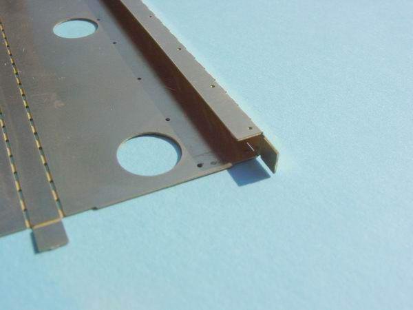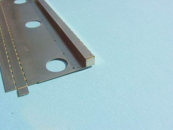 - Fold the inner fold line (perforated to make it easier to fold) to 90 Degs. Ensure that it is square to the top face. The "Hold & Fold" tool can be used for this job.(Refer to top photo at left)