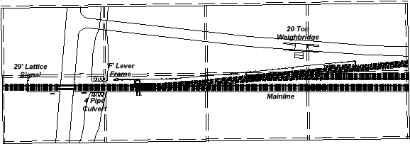 The features of this module include a 29' Up Lattice Post Signal, a 4 Pipe Culvert, The 'F' Lever frame with rodding & cranking, and turnout interlocking, a 20 ton Weighbridge, 10.25: 1 77' Turnouts, the level crossing with signs, and finally the Fettlers area.