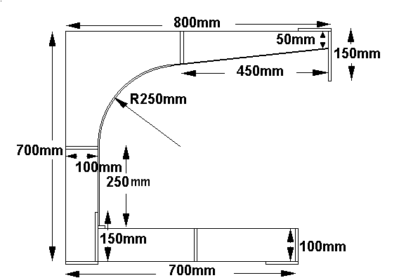 There are 5 profile boards per module, or 1 every 450 mm (18") (or there about). The profile boards need to be exactly the same, to ensure the modules are built true. Therefore it is necessary to rough cut the boards, then using a master profile, route the shape onto the new profiles, thus keeping everything uniform. Six (6) profiles can be cut from a 2400 mm (94") x1200 mm (48") sheet of ply with a couple of pieces for some l800 mm (72") long boards left over. For more detailed plans, feel free to e-mail me. And keep in mind that this system can be used for longer modules, with the only restriction being on whether the modules are to transported or located in a permanent position.